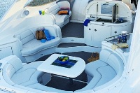 船尾甲板区 喜爱户外娱乐的您,一定不能错过这艘户外设备完善的豪华游艇! 从甲板娱乐区步下两阶即到船尾区。船尾附备一双人座位及一个两尺宽的外加游泳平台。这座液压式操作的平台超过四英尺宽,可调节其于水平面的高度,以方便水上游玩器材启动及游泳人士畅泳。此区亦动亦静,只要闲坐于此前观,一切活动和美景尽收眼底。 |