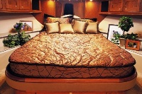主卧套间 主卧套间位于船头私人位置,具有独立门锁以分隔开客厅区。套间内有绕岛型双人大床,配以天花照明及阅读灯销,及大量的挂柜和储存柜。 |
