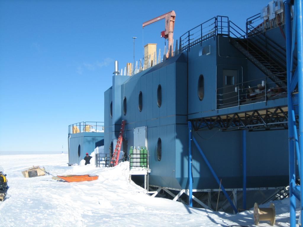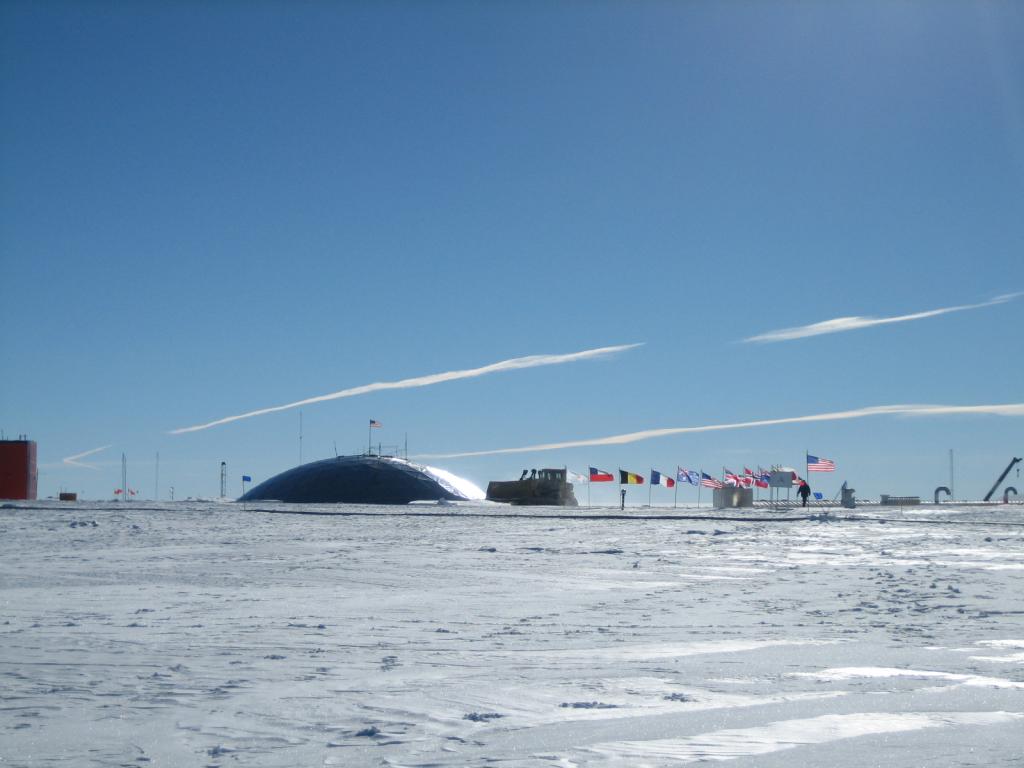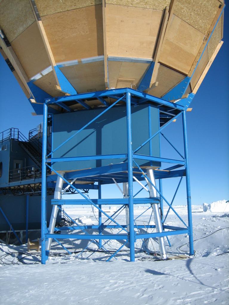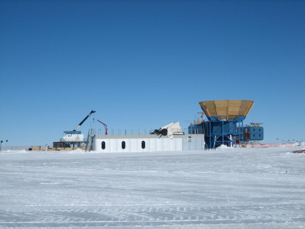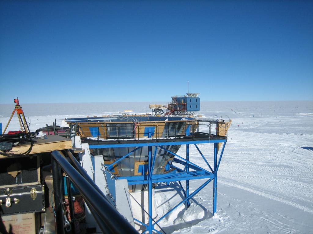 A view of QUaD and of Ice Cube (the new neutrino detector under construction)