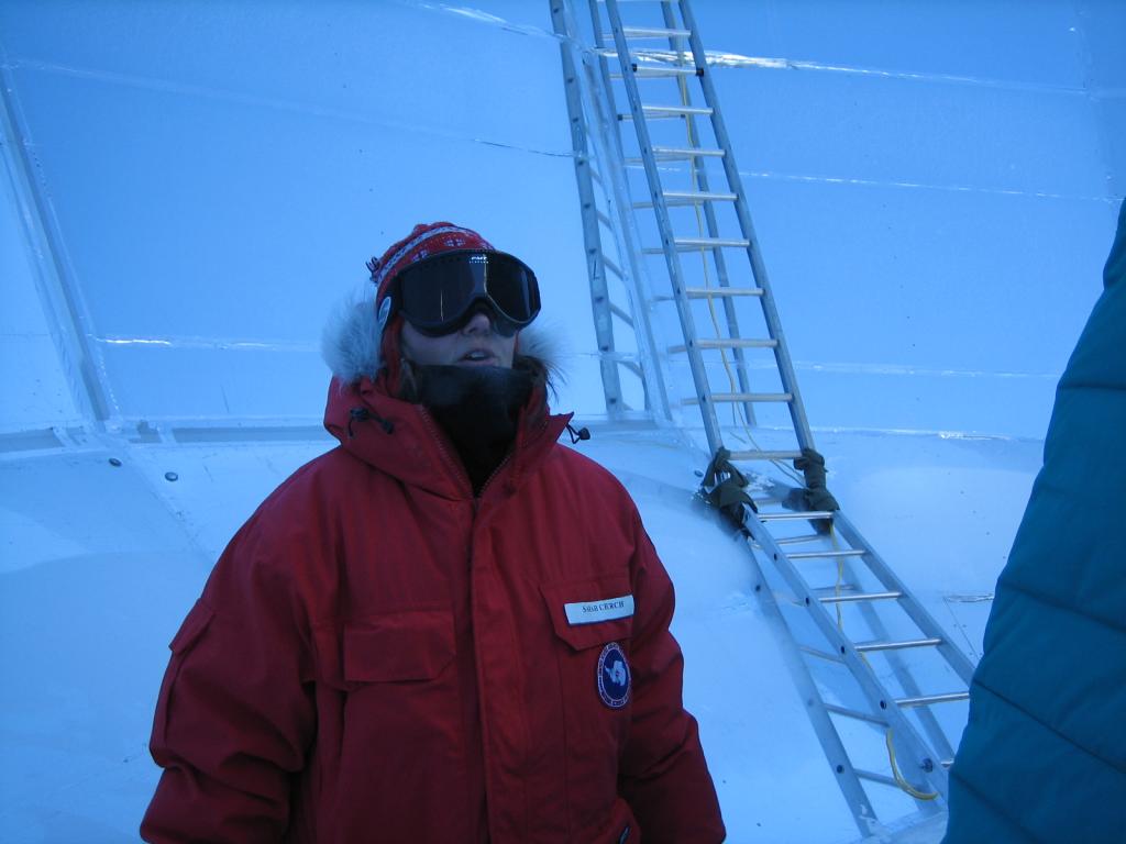 Sarah inside the shielding containing the QUaD 2.6m primary