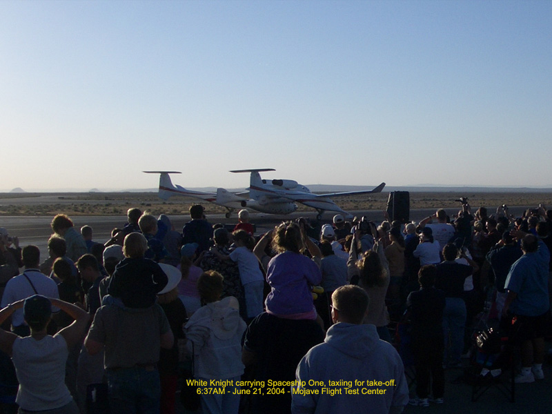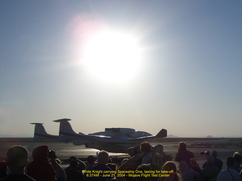 White Knight, carrying Spaceship One, taxiing for take-off - 6:37AM 127.64 Kb
