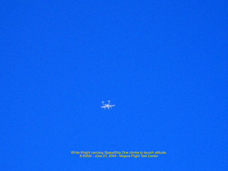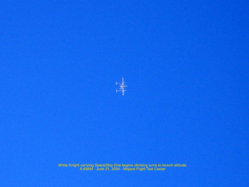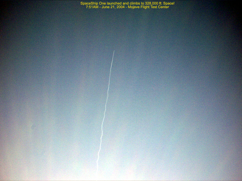 Spaceship One launched (47,000ft) and climbs at Mach 2.9 to 100km: Space! - 7:51AM 222.67 Kb