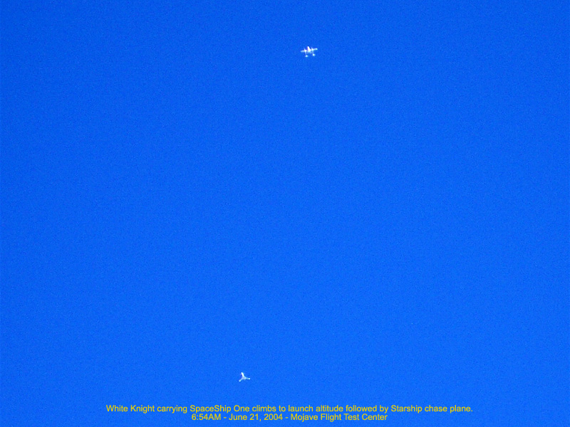 White Knight, carrying Spaceship One, climbs to launch altitude followed by Starship chase plane 164.56 Kb