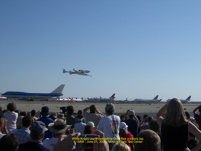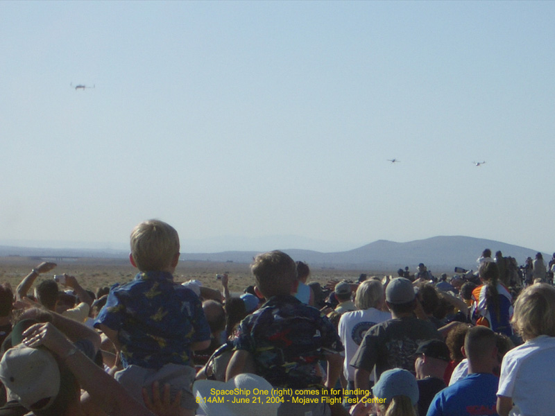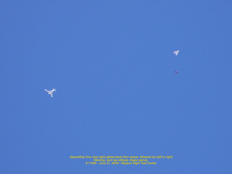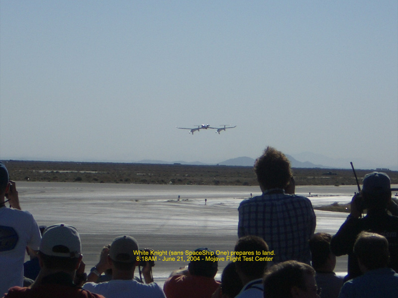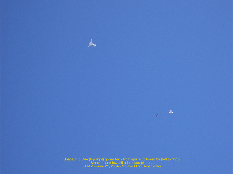 Spaceship One (right) comes in for landing - 8:14AM 112.61 Kb